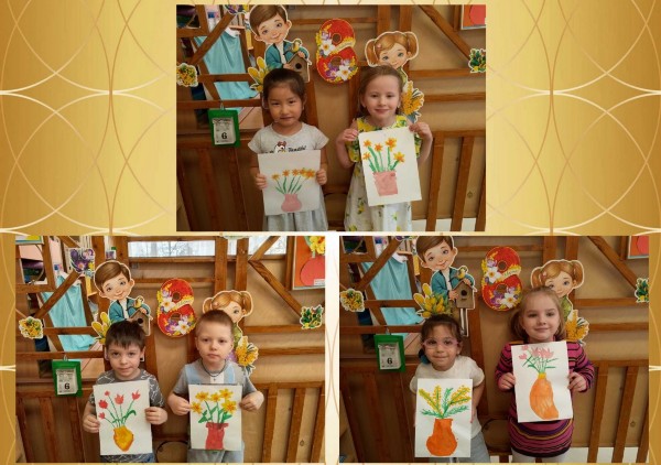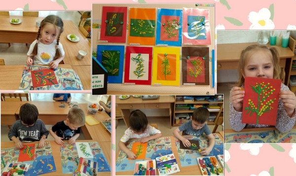 Мы познакомили ребят с весенними цветами мимозой, закрепили понятие первоцветы. Ребята рассмотрели веточки вербы, а потом отразили свои знания в лепке и аппликации. А в ходе рисования изображали ледоход на реке.