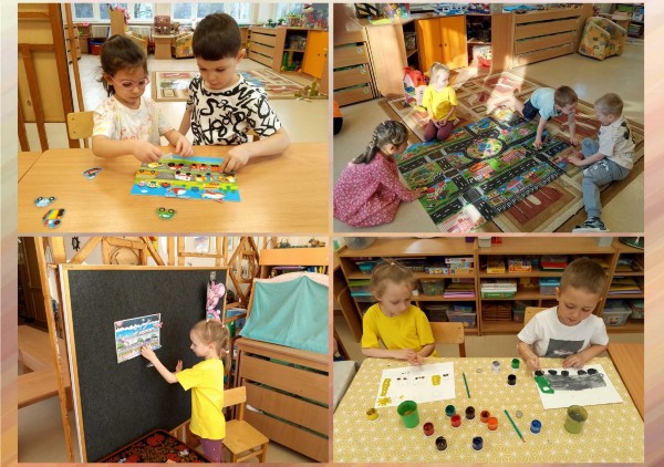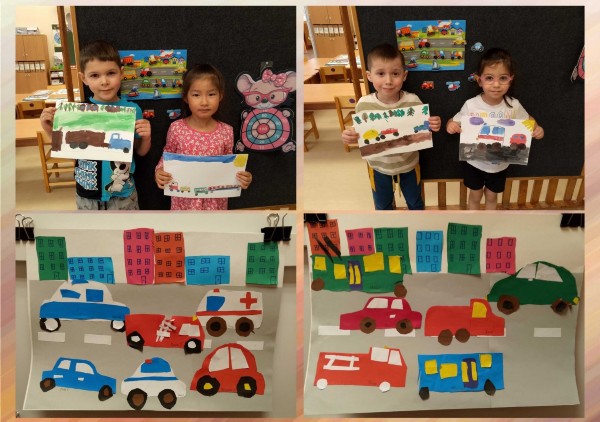 | На первой неделе апреля мы изучали тему «Транспорт». Вместе с ребятами мы совершили путешествие на машине времени в историю возникновения транспорта. Дети узнали, что самый первый транспорт был конный, лошадей запрягали в телеги, сани и кареты. Затем люди придумали паровые машины, им на смену пришли самодвижущиеся повозки. И только потом появились первые легковые машины, автобусы и специальная техника. Ребята познакомились с разными видами транспорта: наземный, подземный, водный и воздушный, поиграли в игры «Собери и назови транспорт», «Виды транспорта» . В аппликации дети с удовольствием вырезали различный наземный транспорт, деревья, дома и у них получилась настоящая улица города. В своих рисунках ребята изобразили понравившийся им транспорт, так в нашей группе появилась дорога с бегущими по ней легковыми и грузовыми автомобилями, автобусами и машинами скорой помощи. А ещё в нашей группе появилась напольная дорога для машин, которая заинтересовали и мальчиков и девочек, теперь все дружно в неё играют.