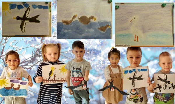 | На последней неделе марта мы изучали перелетных птиц. Ведь наши пернатые друзья возвращаются к нам из южных стран. В начале недели мы познакомились с птицами - докторами леса. Выяснили почему их так назвали, отдали загадки и вспомнили о правилах поведения в лесу. Увидели разницу между лесными, городскими , растительноядными и хищными птицами. На лепке ребята лепили водоплавающих птиц в пруду - лебедей и уток. Мы поговорили почему у этих птиц особая форма лапок и хвоста.