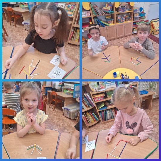 Большое внимание в группе мы уделяем развитию математических способностей ребят. Недавно мы начали знакомиться со счетными палочками. Ребята с большой заинтересованностью выполняли несложные задания по постройке знакомых геометрических фигур, справлялись с элементами счёта, раскладывали палочки по количеству и по порядку, а также выкладывали палочки разными узорами по образцу воспитателя. Например, построй домик, выложи конфету. Не сразу, но ребята справились с непростыми заданиями. |