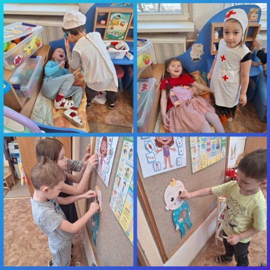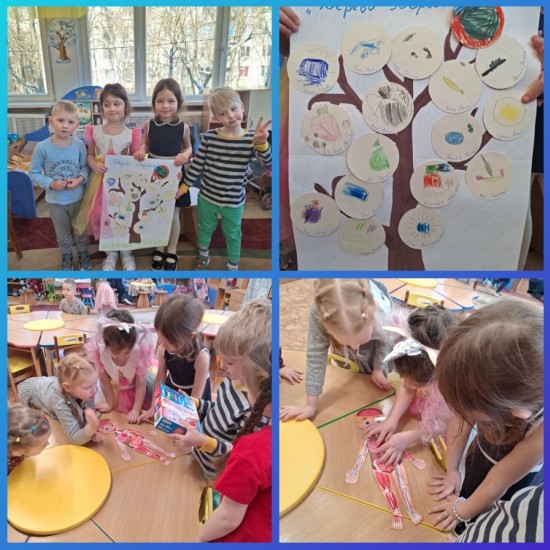 Со 2 по 6 февраля тема недели была «Растём здоровыми». Мы с ребятами рассматривали плакат с изображением человека. Рассматривали строение человеческого тела, повторяли названия частей тела. Ребята расширили знания о важности бережного отношения к своему телу и способах заботы о своём здоровье. Мы обсудили пользу здорового питания, какие продукты питания полезны и какие вредны. Обсудили правила гигиены и спортивного образа жизни и для чего важно их соблюдать. Ребята выполнили коллективную работу «Дерево здоровья». На дереве ребята разместили изображения предметов полезных для поддержания здорового образа жизни. Также ребята играли в настольно-печатные игры и в сюжетно-ролевую игру «Доктор». Ребята попробовали проиграть диалог «На приёме у врача» и закрепили правила вежливого общения. А еще мы провели экспериментирование «Почему снег грязный?»: с ребятами собрали снег с площадки и принесли в группу, а после тихого часа посмотрели, что, когда снег растаял, то стало видно, что в снегу было много грязи. И обсудили с ребятами, почему же все-таки снег грязный и можно ли его есть. На неделе ребята выучили стихотворение «Зарядка»: