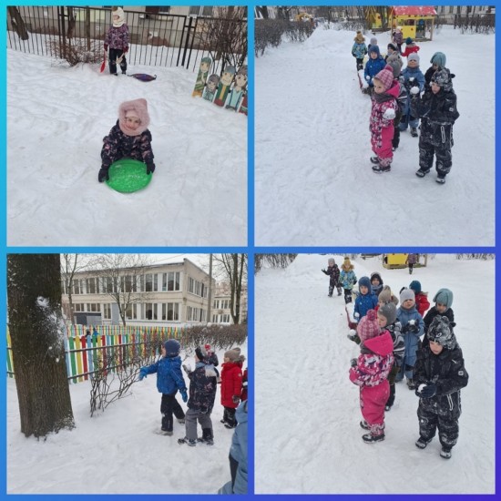 С 12 по 16 января была тема недели «Зимние забавы». Ребята вернулись с праздничных выходных и с удовольствием рассказывали друг другу, как проводили время, куда ходили и что интересного делали. Многие ребята успели покататься на санках, на лыжах и на коньках. Все активно провели каникулы, было чем поделиться с друзьями. Мы с ребятами рассматривали иллюстрации с изображениями зимних забав и развлечений и обсуждали особенности и отличия. На занятиях ребята делали снеговиков с использованием нетрадиционных техник изобразительной деятельности. Ребята сделали аппликацию с использованием ватных дисков и нарисовали снеговика с помощью оттиска от скомканного листа бумаги, дополняя свои работы деталями для создания композиции. Также мы с ребятами заучили наизусть стихотворение «Зима»:
