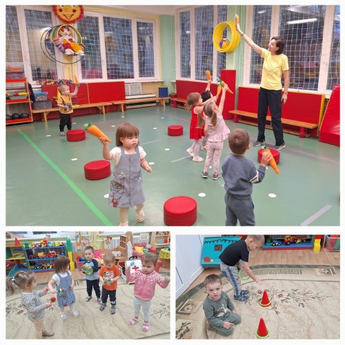 Наши малыши очень любят ходить к инструктору по физкультуре Людмиле Юрьевне в физкультурный зал. Ведь там можно вдоволь набегаться и напрыгаться.