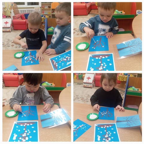 Вот и пролетели новогодние каникулы. Малыши пришли отдохнувшие и повзрослевшие. Дни с 12 января по 16 января пролетели очень весело и интересно. Мы с ребятами вспомнили о признаках зимы. Представили, что мы помощники Дедушки Мороза и нарисовали узор на окне. Устроили снегопад с помощью шариков из пластилина. Говорили о зимних забавах. Читали стихотворения: «Съезжают санки сами вниз...» (О. Островский), «Мы хотим зимой играть» (А.Мальцева). Еще вспомнили о разных животных, заодно закрепив понятия «большой-маленький». Играли в подвижную игру «Самолеты». Продолжаем развивать у детей нравственные чувства, прежде всего любовь к семье: к папе, маме, бабушке и дедушке; понимание, чем они занимаются, какие у них есть домашние заботы, и о том, что нужно помогать им. В первую очередь, убирать свои игрушки в комнате. Еще мы с ребятами кормили и укладывали кукол спать, гладили белье, поливали цветы. Но забавы забавами, а про культурно-гигиенические навыки мы не забываем. После прогулки и перед едой не забываем мыть руки и насухо вытирать полотенцем. Все ребята знают свои полотенца, находя их по картинке. Повторили пальчиковую игру с элементами самомассажа «Неболейка»: Чтобы горло не болело.
