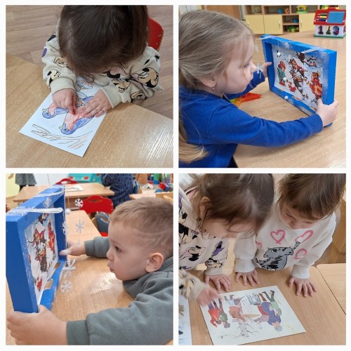 Вот и наступила Зимушка-зима. С 1 по 12 декабря малыши узнали о признаках зимы: что на улице стало холоднее, что солнышко светит, но не греет, и что нужно одеваться теплее. Рассмотрели с малышами одежду: шапку, куртку, штаны, варежки, шарф. Поиграли в дидактическую игру «Одень куклу на прогулку». Конечно, мы стараемся делать как можно больше добрых дел: и для куклы Тани малыши украсили варежки и шапочки, а также помогли ей одеться на прогулку. Рассмотрели иллюстрации о зиме, рисовали кисточками снежок и лепили снежные комочки. Еще мяли бумагу и делали комочки, а потом бросали друг в друга. Малыши были в восторге от такой игры, а такие игры развивают мелкую моторику рук. Еще нашим малышам очень понравилось сдувать снежинку с рукавички. Эта игра не только веселая, но еще и очень полезная, на развитие речевого дыхания. Показали сказку на фланелеграфе «Заюшкина избушка», поговорили о поступках сказочных героев.