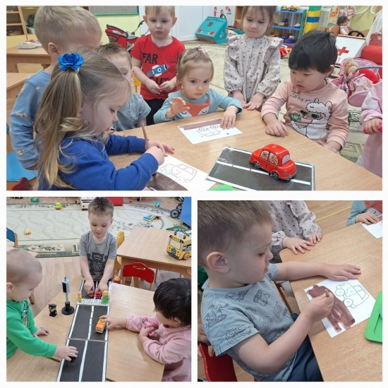По шоссе идут машины(крутим воображаемый руль) По асфальту едут шины(ладони двигаются параллельно друг другу) По дороге не беги(погрозить пальцем) Я скажу тебе: «Би-би»(рука сжата в кулак, большой палец выпрямлен) Еще мы играли в дидактические и подвижные игры. Наши ребята любят и рисовать. Рисовали дорогу для машины, лепили сигналы светофора, для игры с машинами и колеса для машин. С 16 февраля началась масленичная неделя. Проводы морозной зимы и встреча долгожданной весны. Неделя веселья, забав и вкусных блинов. Вот и мы с ребятами повеселились, водили хоровод, дружно играли передавая друг другу горячий блин, а некоторые малыши рассказали нам, что уже успели поесть блины дома. Уважаемые родители, понаблюдайте на улице за движением различного транспорта, побеседуйте с ребенком о том, на какой свет светофора можно переходить улицу и на какой нельзя, проиграйте с детьми в наши новые пальчиковые игры «Молоточком я стучу» и «Транспорт». Дорогих наших дедушек и пап поздравляем с Днём защитника Отечества! Желаем здоровья и удачи!