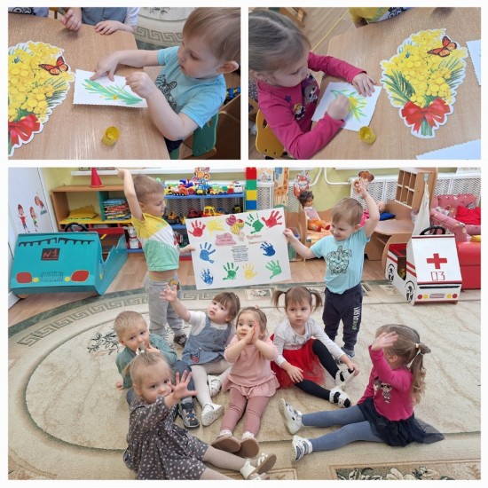 На неделе с 2 по 6 марта мы говорили с ребятами о мамах, бабушках, как их зовут, как много у наших мам домашних забот и дел по дому и что обязательно надо мамочкам помогать. Для кукол постирали и нагладили белье, закрепив сразу основные цвета, покупали овощи в магазине ,а потом готовили суп. Выучили песню для мамы и играли в пальчиковую игру «Пирожки». Готовили нашим мамам и бабушкам подарки, лепили бусы, рисовали мимозу. Сделали с ребятами коллективную поздравительную газету для мам. Рассматривали аквариум с рыбками, узнали, что у рыбок есть туловище, голова, хвост, плавники. Рисовали рыбок и делали для них аквариум. Уважаемые наши бабушки и мамы. Мы поздравляем вас с замечательным праздником весны! Желаем вам тепла в душе, здоровья и благополучия!
