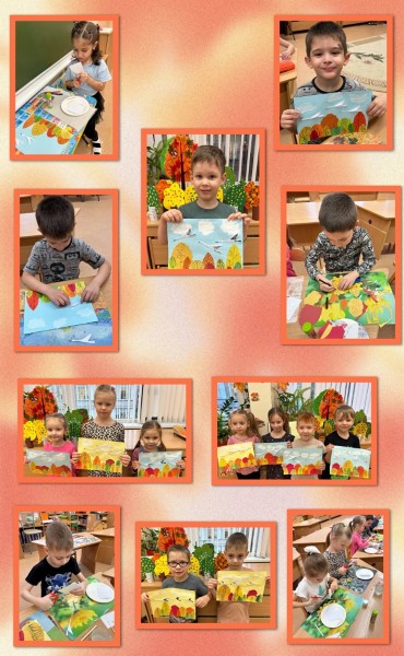 На этой неделе мы не только гуляли и экспериментировали. Мы с ребятами слепили осенние деревья, научились тонировать бумагу акварелью и рисовать осенний лес техникой печатания листьями и сделали яркую ветку красной смородины, используя элементы хохломской росписи.