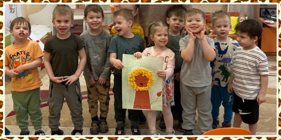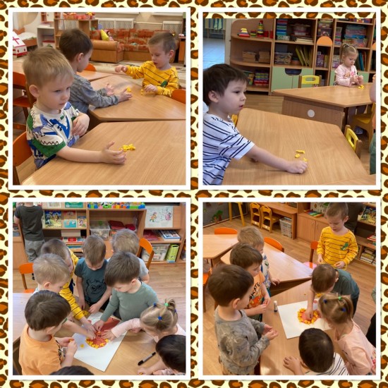 изготовили коллективную работу в технике аппликации «Лев». Малыши из салфеток катали бумажные комочки, а потом приклеивали, и так получилась пушистая грива у нашего льва. Очень деткам понравилось работать вместе. |