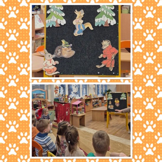 Мы читали ребятам художественную литературу: русские народные сказки: «Заюшкина избушка», «Лисичка - сестричка и серый волк», «Снегурочка», «Зимовье зверей», «Рукавичка», «Морозко», разучивали потешку: «Как по снегу, по метели».