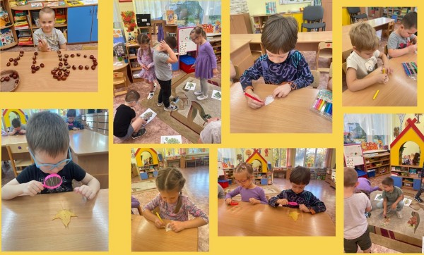 Дети научились видеть и понимать разницу между деревом и кустарником. Дерево — это растение, имеющее один ствол, деревянистые, твердые подземные и наземные части; ветви начинаются на некотором расстоянии от земли и образуют крону. В отличие от деревьев кустарники имеют несколько деревянистых стволиков, а ветви их начинаются сразу от земли. Ребята посмотрели презентации на тему «Как деревья готовятся к зиме», «Летний сад». Рассматривали плоды, кору, листья деревьев. Шишки, желуди каштаны использовали в качестве раздаточного на занятии по математике: считали, выкладывали цифры.