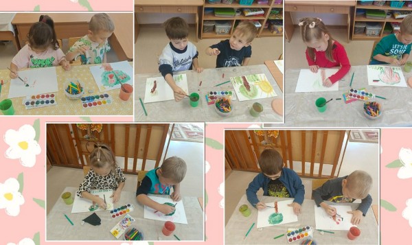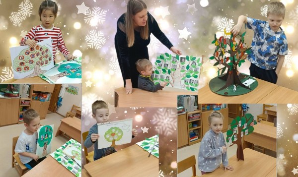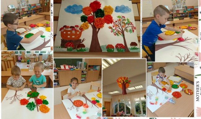 В группе, ребята трудились над подвесами в виде осенних деревьев. Совместно создавали коллективную работу на осеннюю тематику.