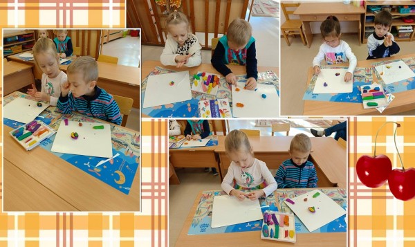 Из пластилина ребята учились создавать красивый натюрморт. На вылепленные тарелочки положили разнообразные фрукты. А из цветной бумаги, ребята, вырезали гроздь винограда. Виноград получился разных сортов и цветов.