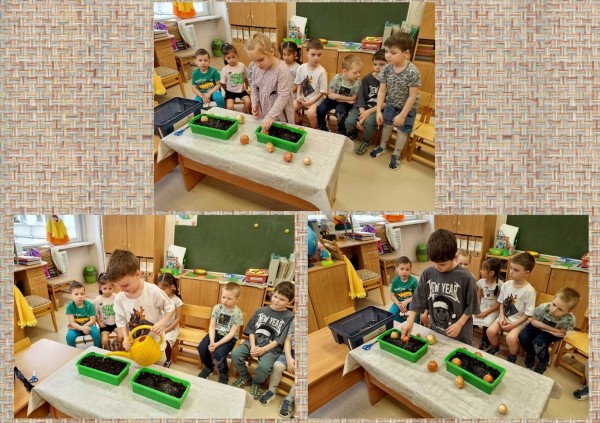 Мы с ребятами посадили лучок в землю и в нашей группе появился огород на окошке. Теперь дети с нетерпением ждут появления первых зелёных пёрышек.