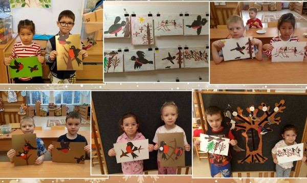Для украшения раздевалки руками детей были изготовлены ласточки. В рисунках дети отразили понравившихся птиц в полёте или на земле.
