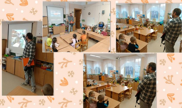 Мы хотим поблагодарить папу Ярослава - Олега Владимировича. Он рассказал о своей работе. Олег Владимирович работает шеф-поваром в ресторане El Patio. Он показывал ребятам меню ресторана и фартук шеф-повара. Подробно показывал и рассказывал о блюдах ресторана, об оборудовании кухни и о том, как он стал шеф-поваром и что его привлекло в этой профессии.