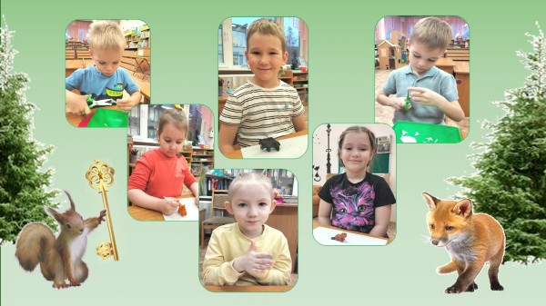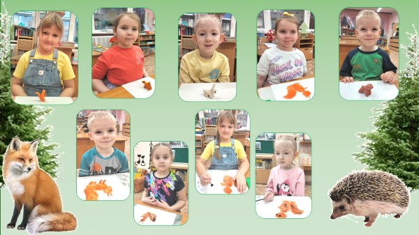 На занятии по лепке, тема которого была «Кто в лесу живёт» дети слепили разных животных: зайца, белку, бобра, медведя, кабана и др. На аппликации у всех ребят получились забавные зайчики, а на рисовании – белочки. Повторяли «Правила этикета для воспитанных детей. Вежливые слова», «Безопасное обращение с животными» (домашние и бездомные), «Опасные находки». Искали ответы на разные темы: «Что такое Красная книга», «Зачем нужно охранять животных?», «Кто такой егерь/зоолог?», «Какие животные едят сырую пищу? Почему?», «Кто кого боится?».