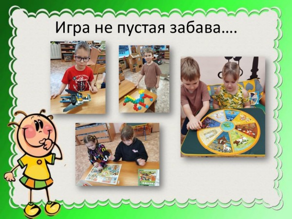 Дети играли в разные подвижные, настольные и сюжетные игры, мы с ними читали, отгадывали загадки.