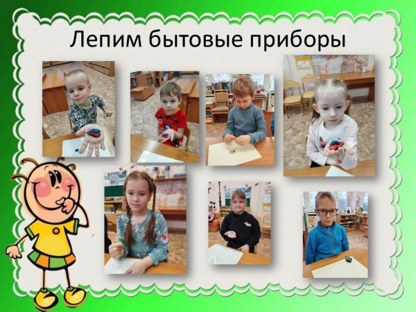 В течение всей недели воспитанники получали новые знания о наших верных помощниках - бытовых приборах, которые есть в каждом доме. Ребята беседовали с дефектологом, Натальей Евгеньевной, об электроприборах, которые окружают нас, и делились своим опытом использования в быту вместе с родителями тех или иных бытовых предметов, называя не только такие, уже обычные предметы как пылесос или стиральная машинка, но и не всем понятные названия: «робот – пылесос», «кофемашина», «блендер», «миксер». В повседневной жизни закрепляли знания в играх: «Раз, два, три, что может быть опасно – найди», «Разрезные картинки», «Один-много». Во время образовательной деятельности лепили предметы: утюг, телевизор, фен, стиральную машину и швейную машину.