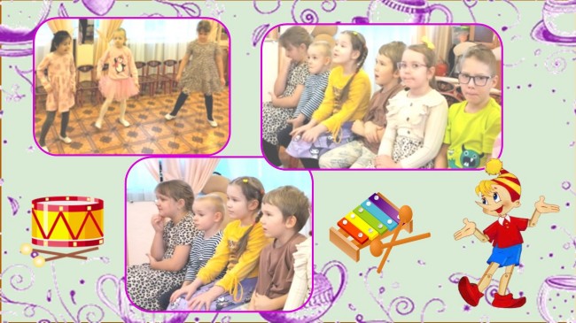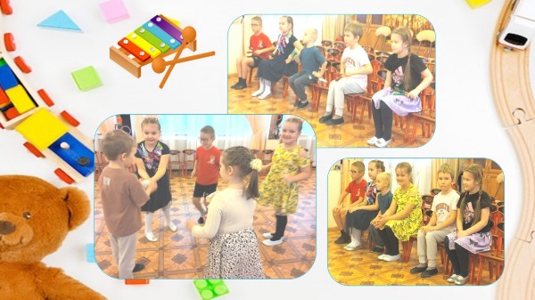На музыкальных занятиях дети слушают музыку (А. Вивальди «Времена года»), готовятся к концерту для бабушек и мам: поют песни, танцуют и играют в оркестре на ложках.