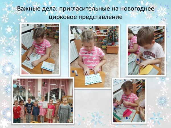 Дети играли в разные подвижные, настольные и сюжетные игры, мы с ними читали, отгадывали загадки, повторяли песни, танцы и стихи к Новому году, готовили поздравительные открытки и подарки к празднику.