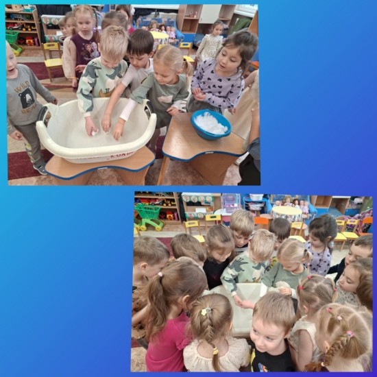 На первой неделе ребята занимались экспериментированием: смешивали в воде краски разных цветов и получали оттенки, а также провели опыт, как вода из двух стаканчиков с помощью салфеток «перешла» в третий. Ребята были в восторге!
