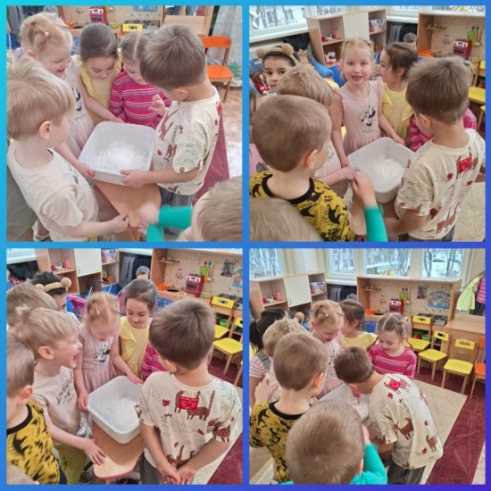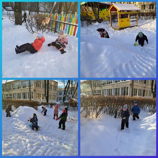 С 12 по 16 января была тема недели «Зимние забавы». Ребята вернулись с праздничных выходных и с удовольствием рассказывали друг другу, как проводили время, куда ходили и что интересного делали. Многие ребята успели покататься на санках, на лыжах и на коньках. Все активно провели каникулы, было чем поделиться с друзьями. Мы с ребятами рассматривали иллюстрации с изображениями зимних забав и развлечений и обсуждали особенности и отличия. На занятиях ребята делали снеговиков с использованием нетрадиционных техник изобразительной деятельности. Ребята сделали аппликацию с использованием ватных дисков и нарисовали снеговика с помощью оттиска от скомканного листа бумаги, дополняя свои работы деталями для создания композиции. Также мы с ребятами заучили наизусть стихотворение «Зима»: