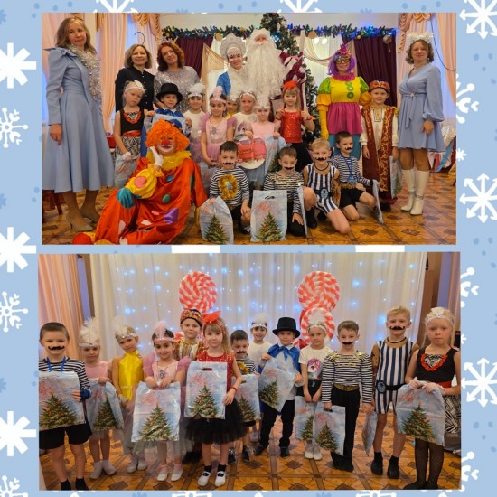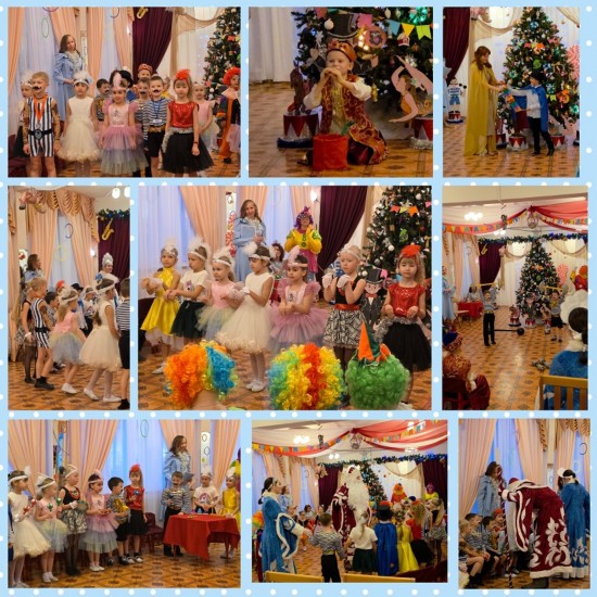 | 25 декабря вместе с ребятами старшей группы «Гнездышко» мы стали участниками новогоднего циркового представления, которое провели весёлые клоуны Клёпа и Ириска. Ребята были настоящими цирковыми артистами. На цирковой арене выступили изящные гимнастки, забавные клоуны, силачи, прекрасные цирковые лошадки, заклинатель змей - факир и маги-иллюзионисты, вызвавшие восторг зрителей от чудесных превращений. Вместе с Дедушкой Морозом и Снегурочкой дети танцевали, пели песни и веселились. И, конечно, каждый получил подарок из рук Деда Мороза. Уважаемые родители, мы поздравляем вас с Новым годом! Желаем ярких впечатлений, самых радостных мгновений, счастья, доброты.