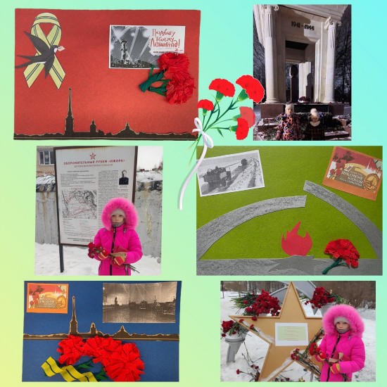 Неделя с 26 по 30 января была посвящена подвигу Ленинграда. 27 января - важная дата для Санкт-Петербурга. 82 года назад в этот день Ленинград был полностью освобожден от фашистских захватчиков, после почти 900 дневной блокады. Мы знакомили ребят с жизнью людей во время блокады, Дорогой жизни через беседы, чтение художественной литературы. Интересные истории из жизни блокадного Ленинграда дети узнали из рассказов писательницы Валентины Семенцовой «Лист фикуса». Маленькой девочкой, пережив это сложное время, она ничего не забыла, даже то, что листья фикуса, которые она съела, возможно, спасли ей жизнь. Каждый день отдаляет нас от тех суровых военных лет, но каждый должен знать и помнить подвиг защитников. Память - это наше почтение тем, кто отдал свою жизнь за нашу свободу. Совместно с ребятами мы изготовили поздравительные открытки петербуржцам, которые затем дети повесили в своих парадных. В своих рисунках дети изобразили Дорогу жизни, памятник «Разорванное кольцо», маленький кусочек хлеба на целый день.
