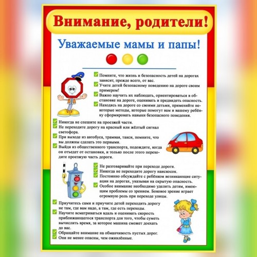 Уважаемые родители, рекомендуем вам повторить с детьми правила дорожного движения. Помните: безопасность детей на дорогах зависит от нас, взрослых! Именно вы - пример для них!