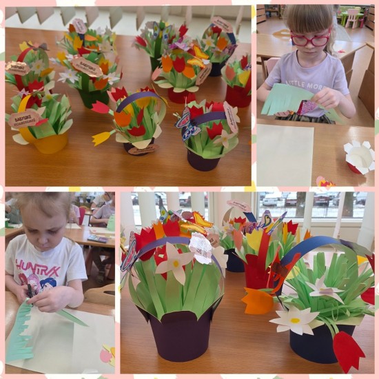 На творческих мастерских мы с ребятами сделали поздравительные открытки и корзиночки со цветами для наших любимых мам и бабушек. А на занятии по изобразительной деятельности мы продолжили знакомство с таким жанром живописи как портрет и узнали секреты художника-портретиста. Дети нарисовали портреты своих любимых мам.