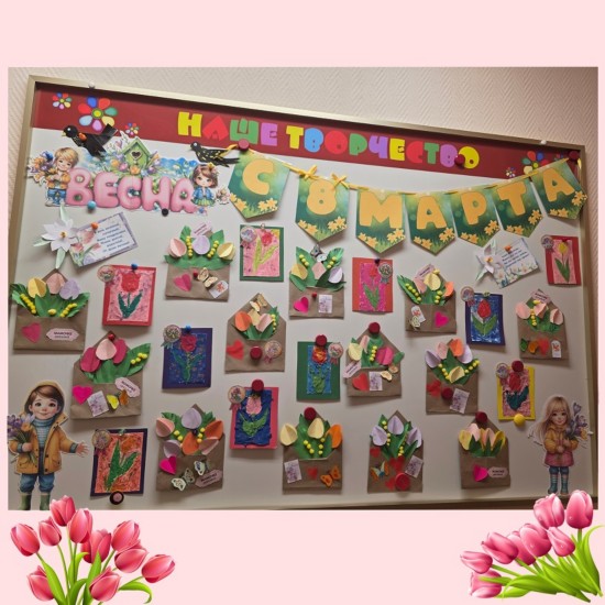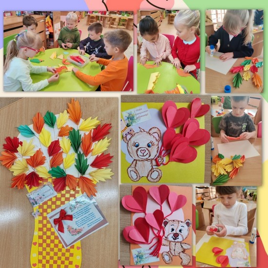 В последнее воскресенье ноября принято поздравлять любимых наших мам. День Матери - это замечательный праздник, в который говорят много добрых ласковых слов самому дорогому человеку на планете - маме. Дети выучили поздравительное стихотворение. С большой любовью смастерили открытки в форме сердечка на палочке для своих мам. Вместе с ребятами мы оформили праздничную доску. В технике плетения из полосок картона дети смастерили вазу, украсив еe. В ней мы и разместили созданные открытки. Из цветной бумаги для украшения сделали цветы.