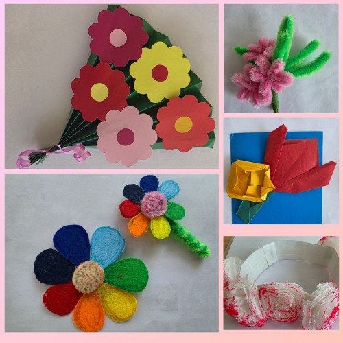 Уважаемые родители, благодарим вас за участие в выставке «Цветочные украшения». Какие же красивые бутоньерки, заколки, веночки, букетики и открытки появились благодаря вашим «золотым» рукам! Спасибо за проявленное творчество, фантазию и подаренное весеннее настроение!