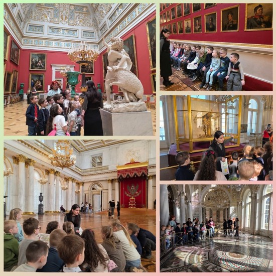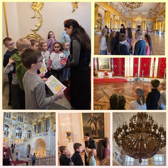В воскресенье 22 марта мы вместе с детьми побывали на обзорной экскурсии «В мире прекрасного» в Государственном Эрмитаже. Как важные гости мы поднялись по парадной лестнице Зимнего дворца - Посольской или Иорданской лестнице. Ребята побывали в роскошных залах Зимнего дворца, в восхитительном Павильонном зале Малого Эрмитажа со сказочными часами «Павлин» и в Рыцарском зале Нового Эрмитажа. А также увидели удивительные творения мастеров Древнего мира. Особый интерес у детей вызвал Египетский зал.