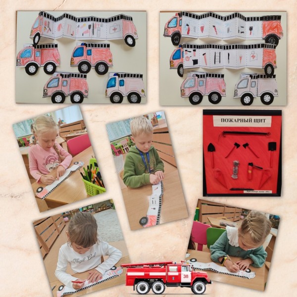 Во второй половине недели мы с детьми закрепили правила пожарной безопасности. Ребята рассматривали иллюстрации про работу пожарных, вспомнили номер телефона для вызова их; составляли короткий рассказ по сюжетным картинкам, решали проблемные ситуации. На творческой мастерской дети оформили поделки в форме пожарной машины, нарисовав, что нужно для работы пожарному. В играх закрепили, что нужно делать, если случился пожар; а главное - что нужно делать, чтобы его избежать. А также ребята познакомились с моделью пожарного щита, с системой оповещения, огнетушителем и указателями эвакуационного выхода в группе, пожарным щитом на улице рядом с нашей прогулочной площадкой. В конце недели в нашем саду прошла тренировочная эвакуация, в ходе которой мы с детьми учились правильно реагировать в случае пожара.