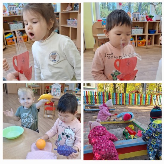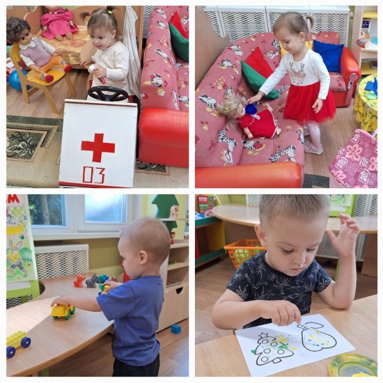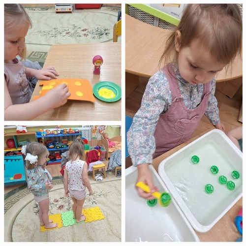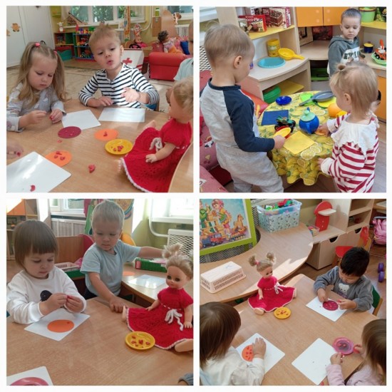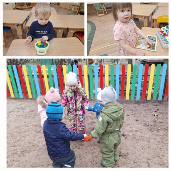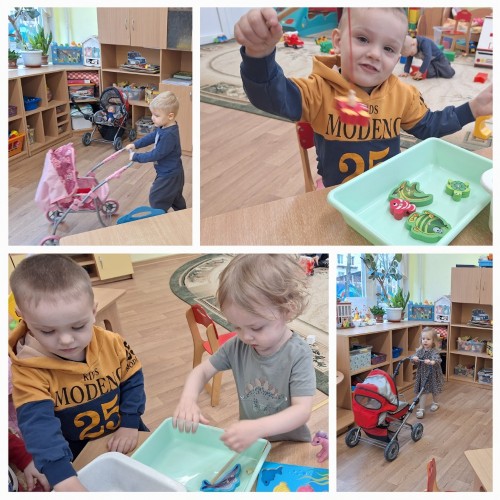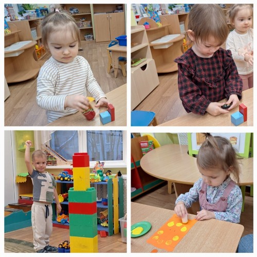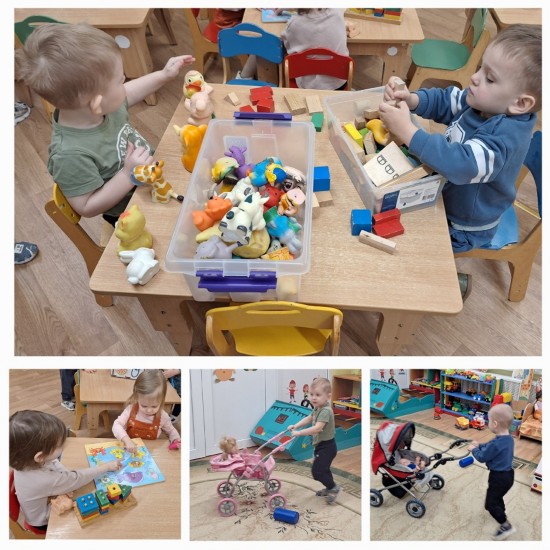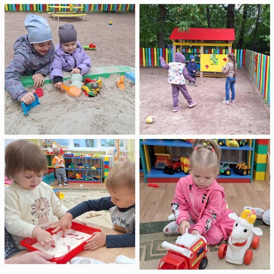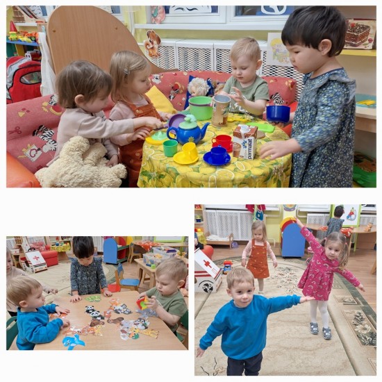 Вот и пролетели первые недельки адаптации. Малыши познакомились с нашей игровой комнатой, увидели, какие у нас есть интересные игрушки. Ребята накрывали на стол, угощали кукол чаем, строили башни, гаражи для машин. Рисовали пальчиками по манной крупе, ловили рыбок магнитными удочками. Малыши даже уже пели песенки и танцевали с нашим музыкальным руководителем, Натальей Анатольевной. Погода нас очень порадовала. Вместе мы ходили гулять, радовались солнышку. Также мы встречали гостей на нашей площадке. К нам приходили знакомиться старшие ребята из группы «Лучик», дети вместе строили из конструктора домики для животных и играли в разные игры. Мы очень надеемся, что малышам будет весело, уютно и интересно в нашей группе.