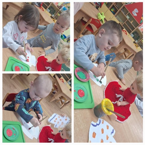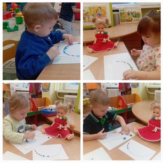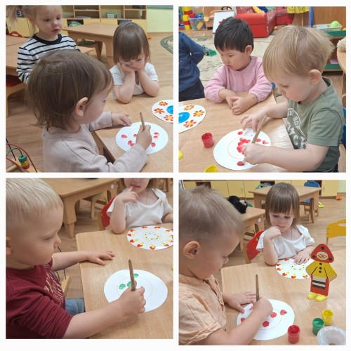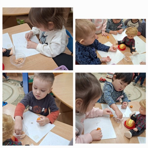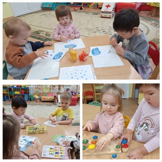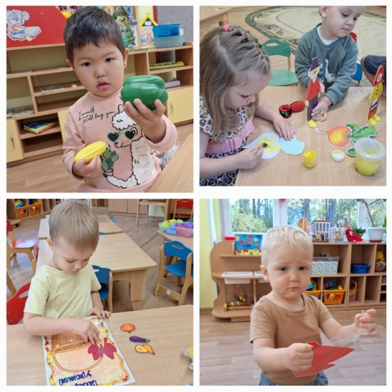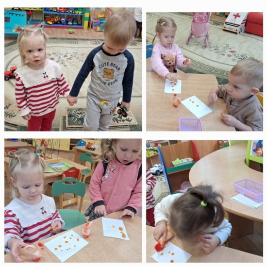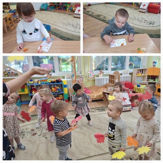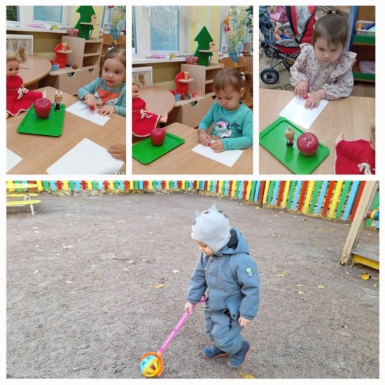 | Вот и наступил октябрь, а наши малыши времени зря не теряют, в нашей группе кипит настоящая, хоть и маленькая, жизнь! Наши непоседы успевают все: накормить петушка зернышками из пластилина, сделать конфетки для куклы Тани, украсить красками, рисуя пальчиками, мячики для наших кукол. А еще поиграть в разные развивающие игры. Потанцевать с осенними листочками.