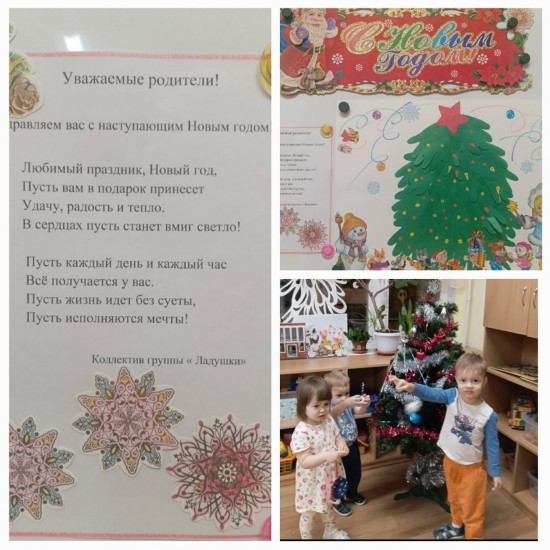 Недели с 15 по 26 декабря у нас пролетели очень быстро, познавательно и весело. Мы с малышами очень многое успели сделать и узнать новое. Говорили о предстоящем новогоднем празднике. Вместе рассмотрели картину, малыши узнали, что на этот праздник украшают елочку и приходит в гости Дед Мороз с подарками . Читали и учили стихи об этом празднике. Играли в пальчиковые игры и ежедневно проводили игры на развитие речевого дыхания. Украшали новогодние шары для елочки. А еще дружно построили почтовый ящик из конструктора - такой яркий и праздничный! А затем наступило самое интересное! Каждый ребенок выбрал понравившуюся картинку и опустил в почтовый ящик. В нашем детском саду прошла семейная выставка «Новогодняя маска», семьи наших воспитанников поучаствовали в ней и принесли свои волшебные маски. А в группе мы сделали с малышами поздравительную коллективную газету «Новогодняя елочка». Также мы рассказали ребятам, как лесные жители готовятся к зиме. Рассмотрели иллюстрации о животных. К нам в гости приходила белочка, и мы для нее лепили орешки. Ежику нарисовали колючки. Малыши узнали, кто из животных впадает в спячку. Малыши играли в игру с прищепками. Такие игры способствуют развитию речи. Мы провели новогодний мастер-класс для родителей и детей, показав, как можно сделать игрушку на ёлку. А самое главное, у нас прошел первый новогодний праздник. Малышей встречала елочка красавица. Мы дружно хлопали и топали, чтобы зажглись на елочке огоньки. К нам приходили на праздник зайчик, белочка и лисичка, Снегурочка и Дед Мороз. Ребята танцевали, пели песни для них и, конечно же, получили долгожданные подарки. Праздник прошел весело и интересно. А еще мы стараемся укреплять здоровье наших малышей. Много гуляем, играем на улице и конечно по утрам делаем зарядку. Уважаемые родители, поздравляем вас с наступающим Новым Годом! Главное здоровья, мира и душевного спокойствия
