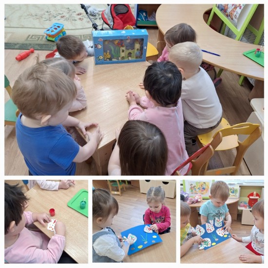 С 10 по 20 марта мы рассказывали нашим малышам о первых признаках весны. Говорили о солнышке, какое оно: лучистое, освещает, светит, согревает. Тает снег, бегут ручьи, появляются сосульки на крышах домов. Рассматривали картину о весне, иллюстрации с изображением солнышка. Лепили солнышко, играли в игру «Лучики для солнышка». Закрепили знания на определение жёлтого и зелёного цвета. Читали и заучивали русские народные песенки и потешки. Играли в подвижные игры на ориентирование в пространстве. Малышам очень понравилась игра «Солнышко и дождик». Ежедневно играем в игры на развитие мелкой моторики, малыши любят играть с мячиками «колючие ежики». Уважаемые родители, повторяйте вместе с нами: Смотрит солнышко в окошко, Светит в нашу комнату. Мы захлопаем в ладошки Очень рады солнышку.