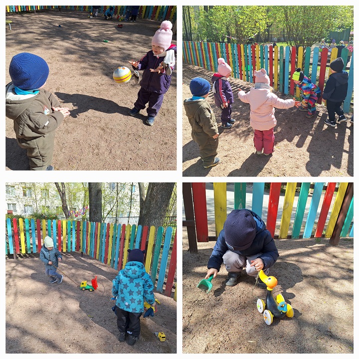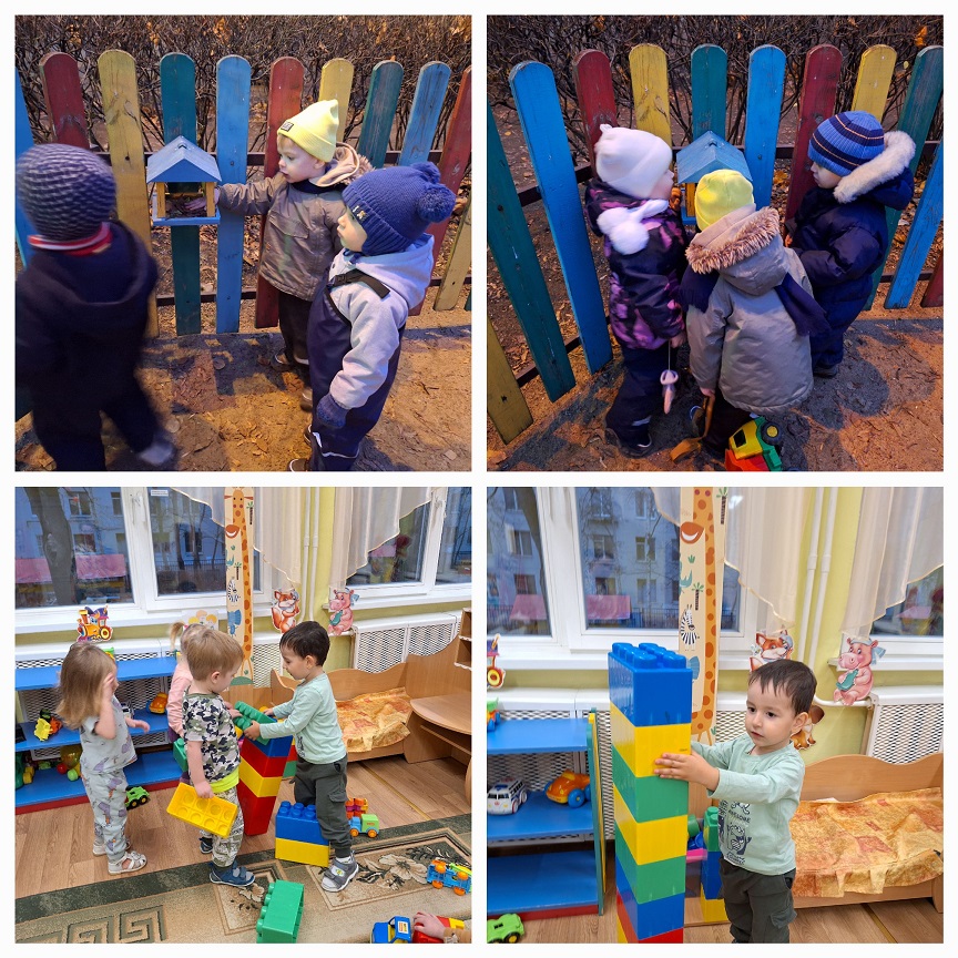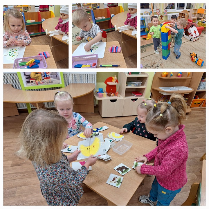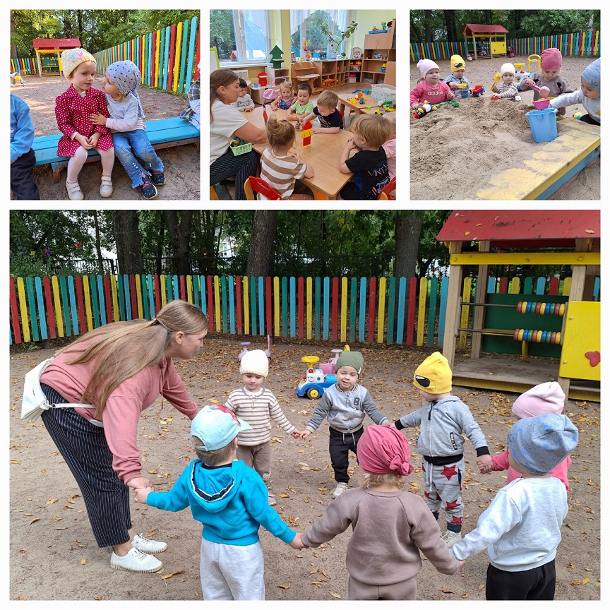 Вот и пролетели первые недельки адаптации. Малыши познакомились с нашей игровой комнатой, увидели, какие у нас есть интересные игрушки. Мы накрывали на стол, угощали кукол чаем, строили башни, гаражи для машин. К ребятам «приходили» сказочные герои и рассказали сказку «Курочка Ряба». Мы даже уже пели песенки и танцевали с нашим музыкальным руководителем Еленой Николаевной. Погода нас очень порадовала. Дружно все вместе мы ходили гулять, радовались солнышку. Дети пытались вставать в круг и играть в веселую игру «Раздувайся пузырь». Во время прогулки к нам на площадку приходили знакомиться ребята из группы «Семицветик», они подарили нам игрушки и подарки, сделанные своими руками. Ребята из группы «Теремок» приходили и помогали нам убирать листочки. Мы очень надеемся, что нашим малышам будет весело, уютно и интересно в нашей группе.