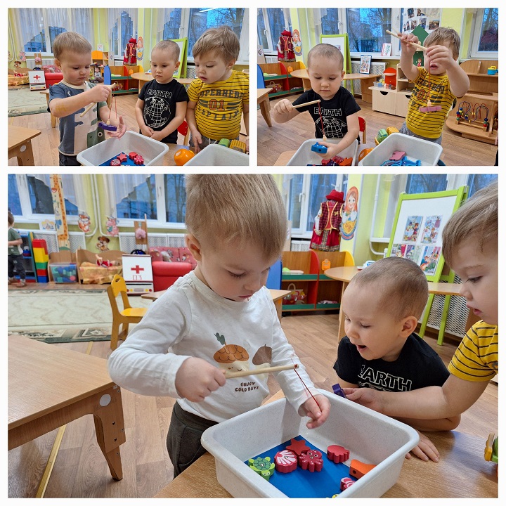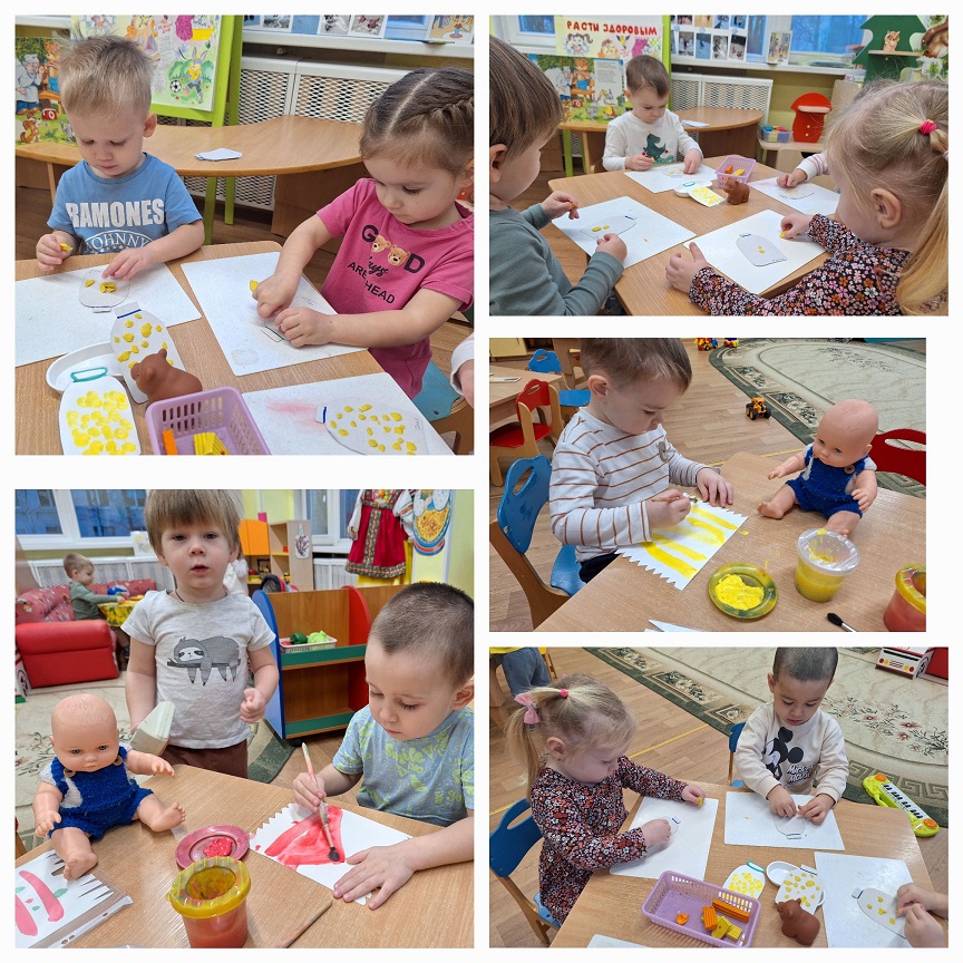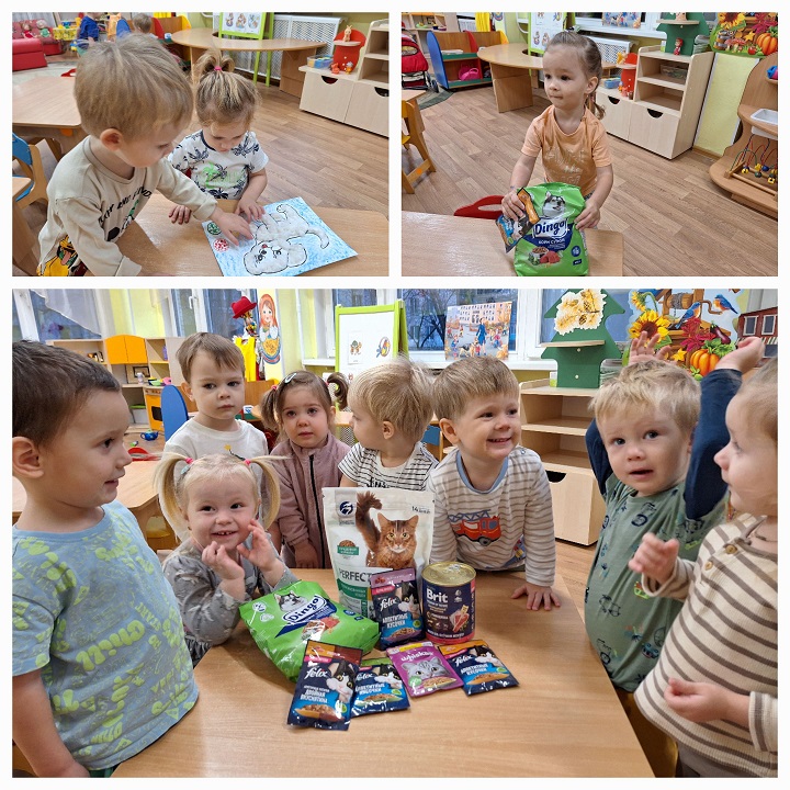 Рассматривали рыбок в «аквариуме», закрепили понятия большая - маленькая. А потом постарались украсить рыбку красками, используя кисточки. Чуть позже каждый попробовал порыбачить, поймать самую красивую рыбку. В нашем детском саду прошла акция по сбору подарков для бездомных животных из приюта. Для них мы сделали открытку, приклеивали вату на бумагу, и у нас получился озорной щенок, которого мы назвали «Белый Бим». Наши малыши очень заботливые, они с удовольствием строили домики для бездомных животных. К нам в гости приходила кукла Таня и девочки готовили для неё разные блюда. На прогулке мы с ребятами любим бегать, играть в подвижные игры и наблюдать за природой. Уважаемые родители, поиграйте с детьми в пальчиковые игры, почитайте стихи о животных. Просим вас не забывать о культурно-гигиенических навыках. Их формирование очень зависит от того, закрепляете ли вы полученные в детском саду умения в домашних условиях. Хвалите ребят за самостоятельность и старание!