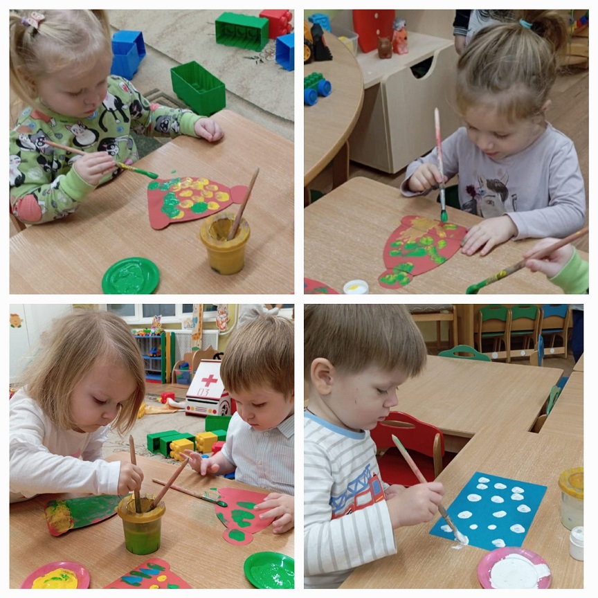 С 16 по 28 декабря мы с малышами готовились к новогоднему празднику. Вместе рассмотрели картину, малыши узнали, что на этот? праздник? украшают ёлочку и? приходит в гости Дед Мороз с? подарками. Мы читали и учили стихи об этом празднике. Играли в пальчиковые игры. Украшали новогодние шары для елочки.