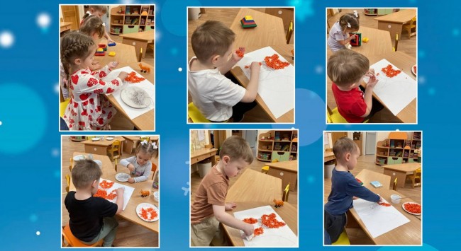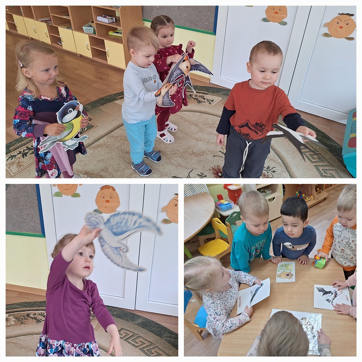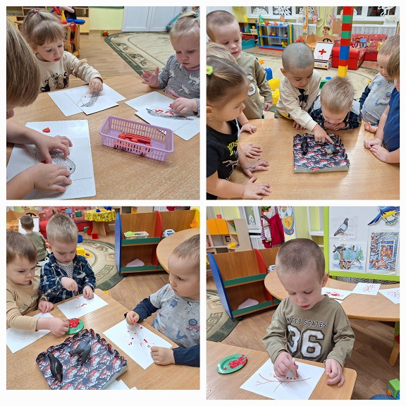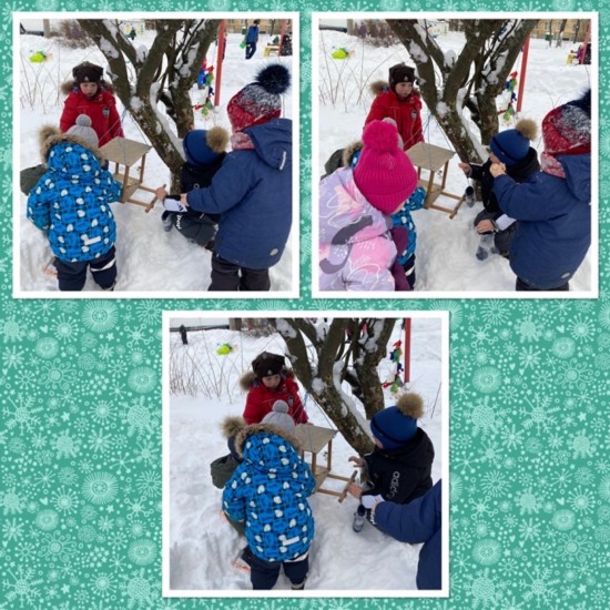 Дни с 9 января по 17 января пролетели очень весело и интересно. Мы с ребятами говорили о птицах, их жизни зимой. Рассматривали иллюстрации с птицами, части тела: голова, крылья, клюв, хвост, грудка, лапки. Читали стихи М.Бирюкова «Птички», В.А. Жуковского «Птичка», Л. Громова «Синичка». Учили ребят различать птиц по внешнему виду (синичку, воробья, ворону, снегиря). К нам в гости прилетал воробей и мы с ребятами нарисовали рябинку, а потом угощали его. А снегирю украсили грудку пластилином, отщипывая кусочки пластилина, раскатывая шарик между ладонями и прикладывая к фону. На прогулке наши любопытные малыши наблюдали за птицами и, конечно, насыпали корм в кормушку. Рассматривая птичек мы закрепили понятия «большая-маленькая», «много-один». Мы стараемся прививать интерес и заботливое отношение к окружающей природе. А ещё наши малыши любят играть в настольные игры, любят строить различные постройки для зверей. Ежедневно мы проводим игры на развитие речевого дыхания, например, ребята с удовольствием сдувают снежинку с варежки, таким образом мы продолжаем развивать речь ребят.