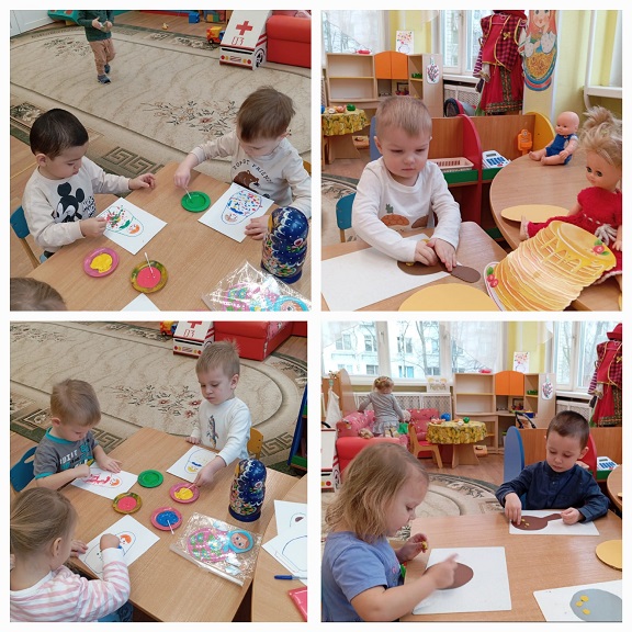 С 24 февраля по 7 марта произошло много событий. Масленица - проводы морозной зимы и встреча долгожданной весны. С 24 по 28 февраля неделя веселья, забав и вкусных блинов .Вот и мы с ребятами повеселились, водили хоровод, дружно играли, передавая друг другу «горячий» блин. Лепили из пластилина оладушки, а некоторые малыши рассказали нам, что уже успели поесть блины дома. В гости приходила Матрешка и ребята красками украсили ей сарафан. Читали и заучивали русские народные песенки.