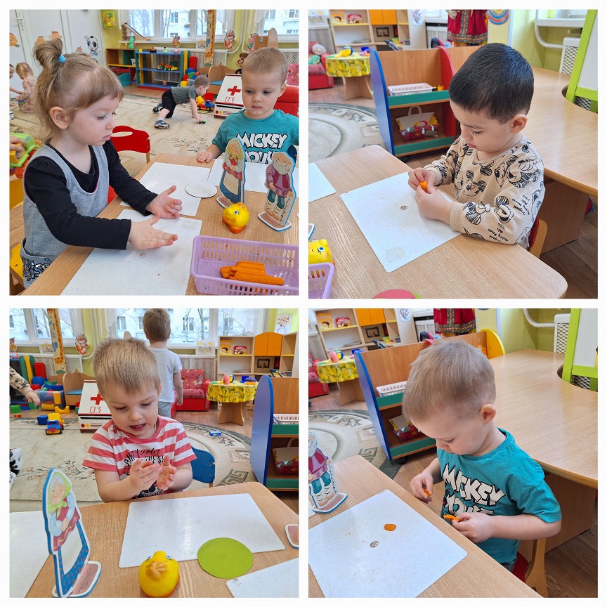 Их не трудно сосчитать. (Поочередно загибаем пальчики) А ещё мы не забываем укреплять здоровье наших ребят в игровой форме - ходим по массажному коврику. Уважаемые родители, в сезон простуд и ОРВИ старайтесь поменьше посещать места скопления людей - торговые центры, массовые мероприятия и т.д. Вместе с ребёнком ведите здоровый образ жизни, много и активно двигайтесь, закаливайте ребёнка. Поиграйте с детьми в пальчиковую игру и закрепите прием лепки круговыми движениями ладоней.