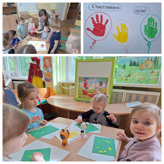 С 14 по 25 апреля мы закрепляли знания о признаках весны. На прогулке наблюдали за небом и солнышком. Читали малышам стихи «Весна» Л.Агрочевой, «Кап-кап» А.Леонтьева. Рассматривали веточку, на которой уже появились зеленые листочки, а потом старались слепить такую же. Рассказали нашим ребятам сказку про капельку, которая живёт в тучке. А потом рисовали используя кисточки и краски «Дождик». Играли в пальчиковую игру «Солнышко»: Солнышко и тучка В прятки начали играть Только солнце спрячется Тучка вся расплачется Только Солнышко вернётся В небе радуга проснется. Нашим малышам очень нравится подвижная игра «Солнышко и дождик». Особенно им нравиться прятаться под зонт. 25 апреля был объявлен Всероссийском днем эколят. Эколята - это настоящие друзья природы, которые хотят сделать мир чище. Мы с малышами вспомнили о птицах, их образе жизни и поведении, роли человека в жизни птиц. Рассказали о перелетных птицах: ласточке, скворце, граче, которые к нам прилетают весной, рассмотрели иллюстрации, читали стихотворения и потешки о птицах. Таким образом, мы обогащаем словарный запас детей и побуждаем отвечать на вопросы по содержанию иллюстраций. В гости к ребятам прилетал воробей, поиграли в пальчиковую игру «Птичка в гости прилетела». Маленькая птичка прилетела к нам Маленькой птички зернышки я дам Маленькая птичка зернышки клюёт Маленькая птичка песенки поёт «чик-чирик», «чик-чирик». Лепили гнезда для птиц и разукрасили мелками воробья. На улице играли в подвижную игру «Воробушки и автомобиль». Мы продолжаем воспитывать у детей бережное отношение к природе и окружающему миру. Уважаемые родители, прогулка не только оздоравливает организм, но и способствует умственному развитию, так как дети получают много новых впечатлений и знаний об окружающем мире. Гуляйте больше со своими детьми и получайте от прогулок как можно больше удовольствия!
