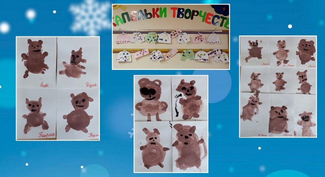 Мы с ребятами выучили стихотворение И.З.Сурикова «Зима». На занятиях по изобразительной деятельности ребята изготовили аппликацию на тему «Оденем куклу на прогулку» и нарисовали рисунки на тему «Косолапый мишка».