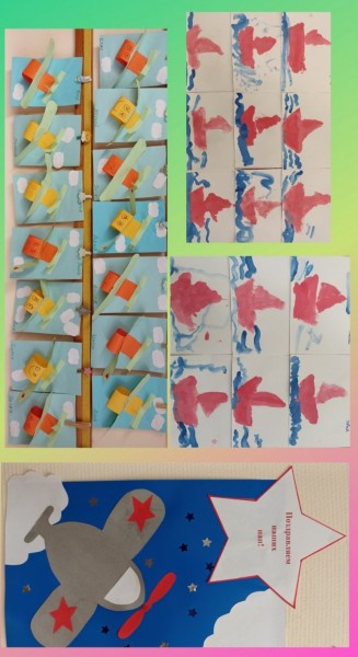 В подарок для пап, ребята изготовили поздравительную газету, открытки и выучили стихотворение для папы.