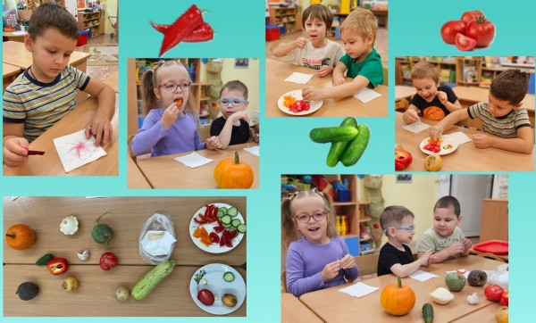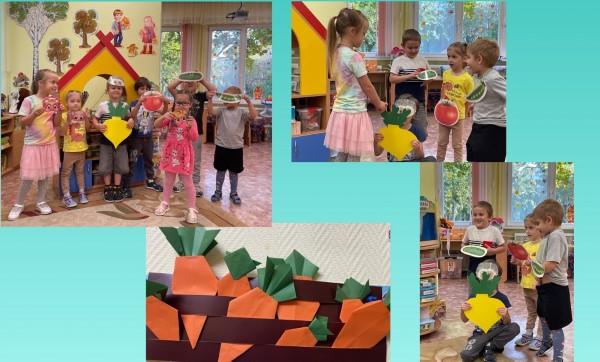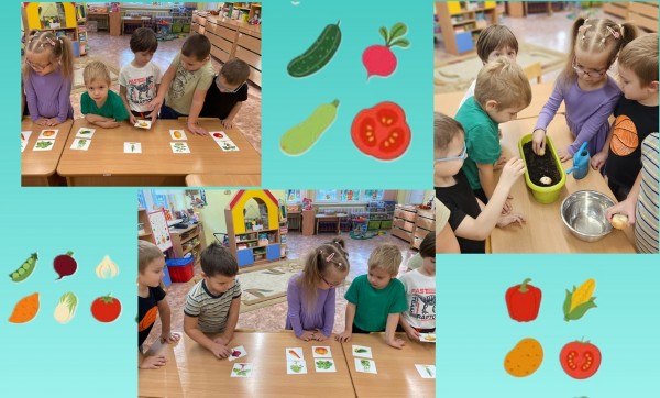 На неделе с 29 сентября по 3 октября ребята уточнили представления об овощах, где они растут, как их выращивают и собирают. Дети составляли загадки и рассказы об овощах, разучивали пальчиковую гимнастику и физкультминутку про овощи. Каждый ребенок принёс по одному овощу, многие овощи дети с родителями вырастили на даче. Дети рассматривали овощи и сравнивали их, составляли натюрморты и зарисовывали их, сделали аппликацию. Ребята инсценировали сказку «Пых», с удовольствием менялись ролями. Играли в дидактические игры: «Вершки и корешки», «Угадай по описанию», «Витаминная корзинка», «Приготовь блюдо», «Поварята», «Узнай по вкусу и запаху». В пятницу для детей была подготовлена викторина: дети отгадывали загадки, отвечали на вопросы, раскладывали овощи и фрукты, "варили" суп и компот. Дети узнали, что овощи и фрукты полезны и в каждом из них есть витамины, поэтому мы с ребятами посадили лук, вспомнили, что необходимо для роста растений.