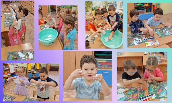 В продуктивной деятельности дети проявили свое творчество, узнали, что такое пейзаж, сделали необычные деревья из бумаги и пластилина.